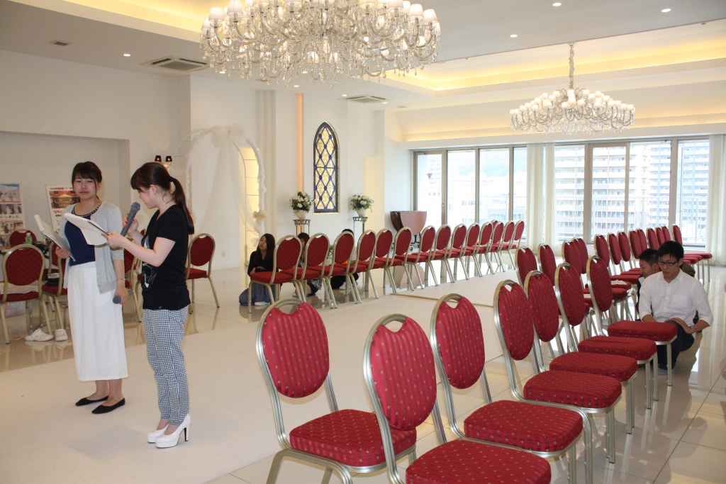 ブライダルホールをステージに見立てて練習中!