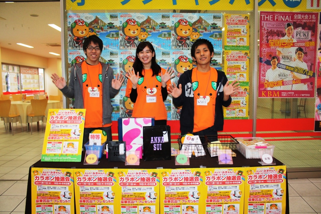 みんなでみきゃんを応援しよう!ガラポン抽選会★本校1階が抽選会場です!ぜひ来てね(^^)/