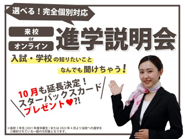 【10月延長決定】来校型orオンライン進学説明会 参加者特典♥スタバカード