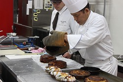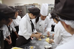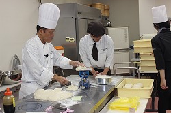 井上シェフの見本を見ながら学生も同じように実践していきます