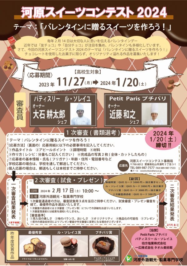 さて!今回の河原スイーツコンテスト2024のテーマは「バレンタインに贈るスイーツを作ろう!」