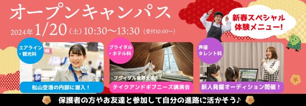 2024年1月のオープンキャンパスは1月20日(土)に開催致します💕