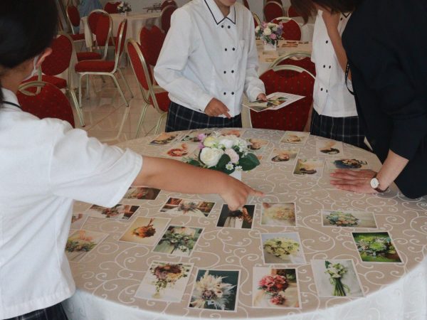 ブライダルのお仕事体験では、それぞれのテーマに沿ってウエディングプランを考えてもらいました。
