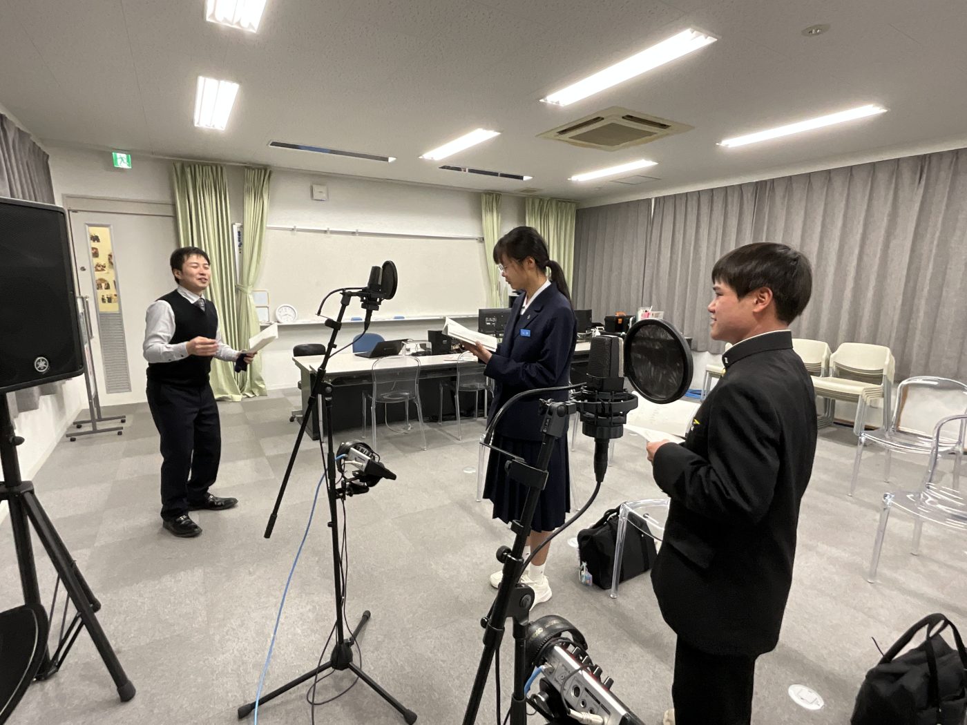 今回は、パティシエやブライダルなど数多くの学科がある中、私たちは、声優タレント科の体験をさせていただきました。