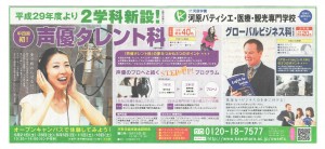 新設2学科の新聞広告を掲載させていただきました