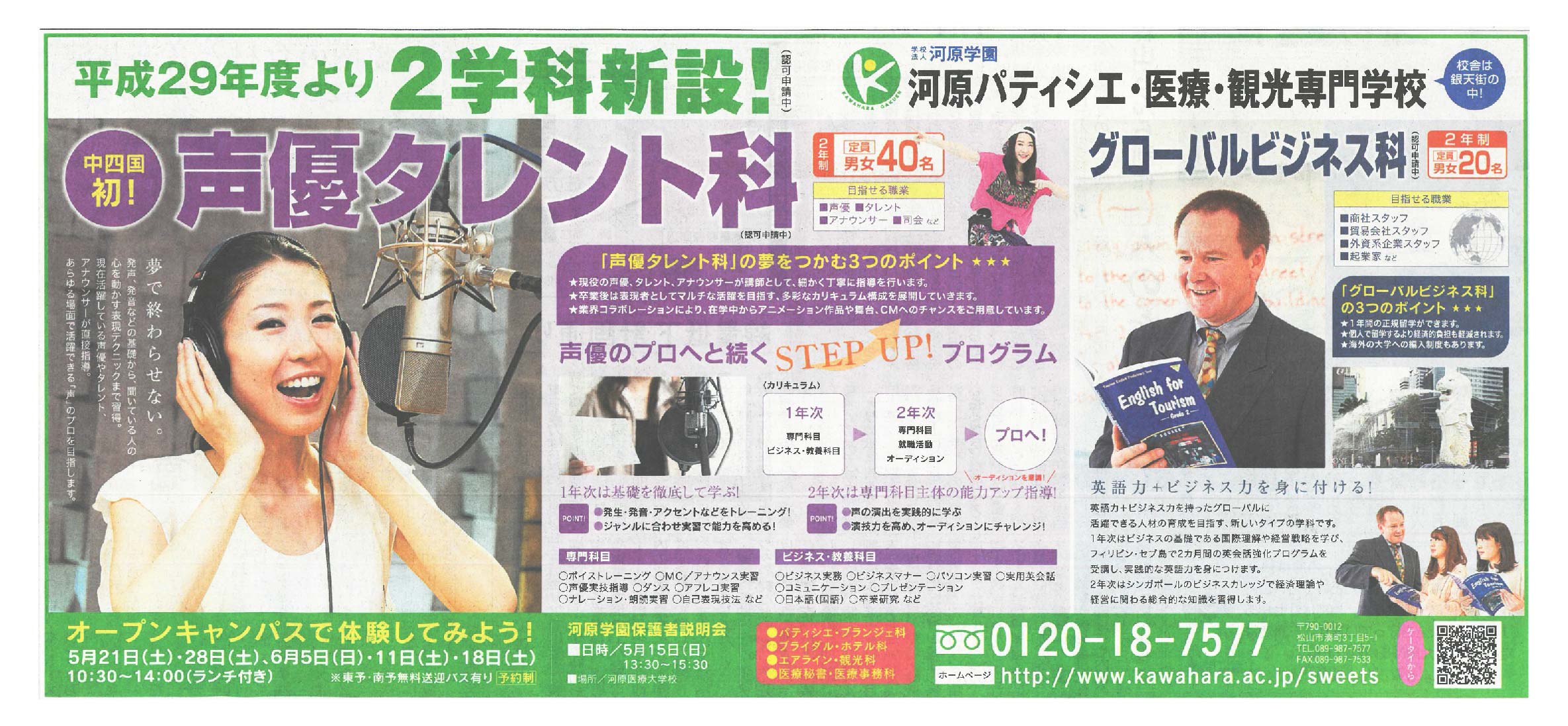 【新設2学科の新聞広告】5月8日の愛媛新聞に掲載しました!