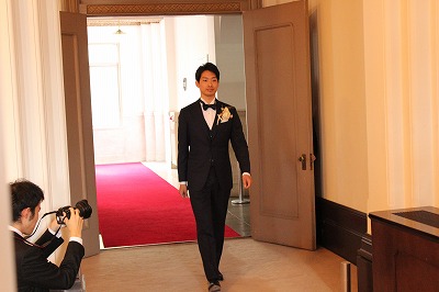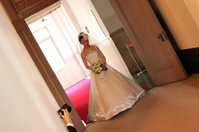 ウェディングドレス姿の美しい新婦の梨愛さんも入場します