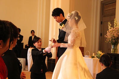 たくさんの方に見守られて誓いの言葉や指輪の交換をしました