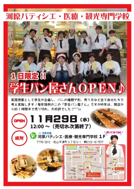 11月29日(水)に学生のパン屋さんが一日限定でオープンしちゃいまーす