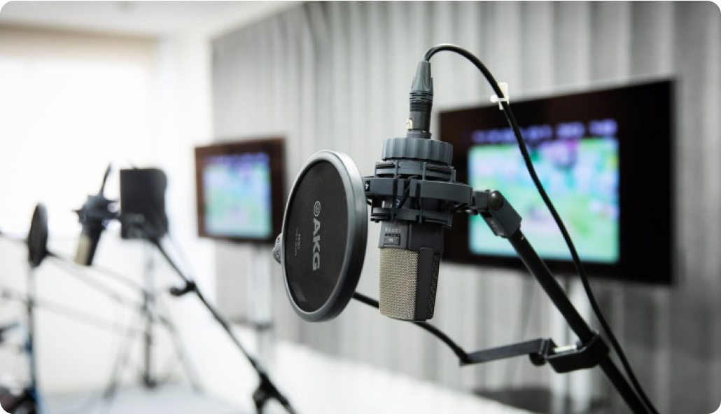 「レコーディングスタジオ」はアフレコ(アニメ・映画の吹き替え)や歌収録、ラジオ演出を行う実習室です。