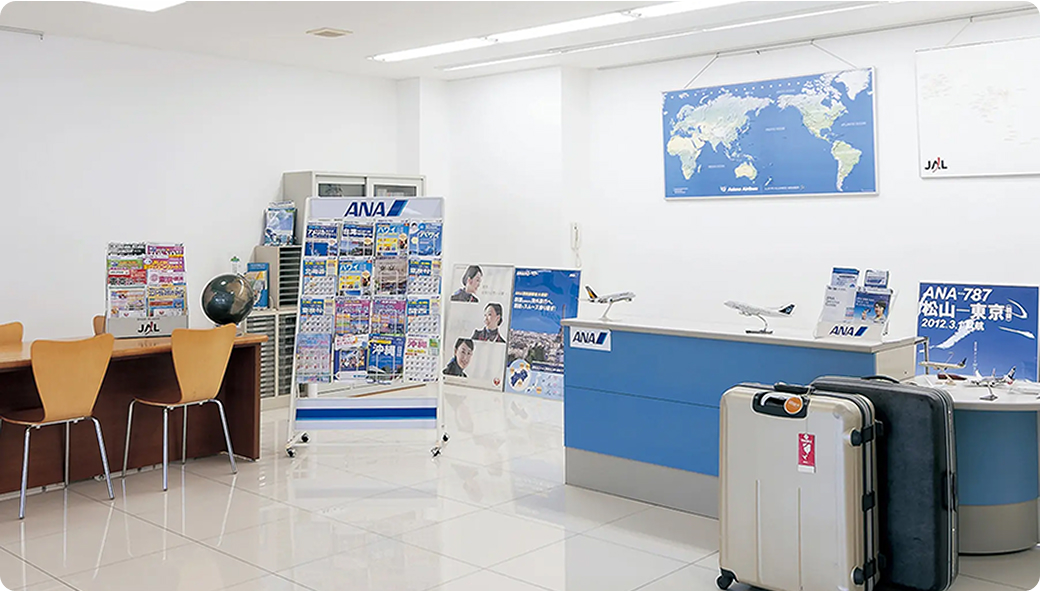 「メディカルカウンター」では、実践的な患者様対応から礼儀作法まで、信頼される対応力を学ぶことができます。「トラベルビューロー」では、空港・旅行カウンターを再現した実習室で、基本的なマナーから実践を学ぶことができます。