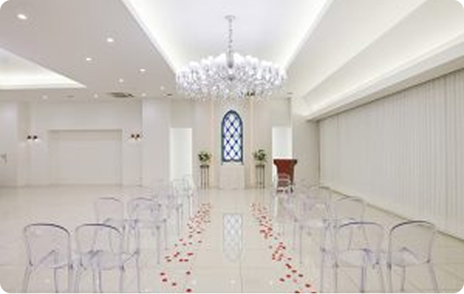 Bridal Hall本物のレストランウェディングを再現した「ブライダルホール」では、レストランサービスや学生プロデュースのリアルウェディングも行い、サービス技術を実践的に学ぶことができます。また、本物のチャペルをイメージして作られた「ホワイトチャペル」では、教会式挙式・人前式挙式など結婚式場さながらのリアルな実習をすることができます。
