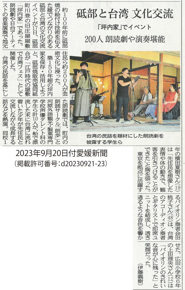 台湾フェス朗読コンサートが愛媛新聞に掲載されました!