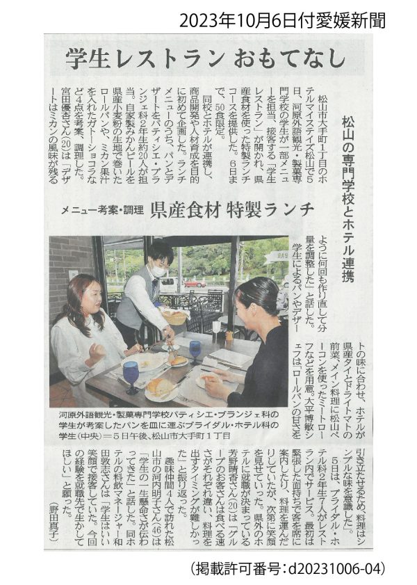 「出来は100点満点!」 愛媛の食材ふんだんに使った“学生レストラン”がお目見え 河原学園×ホテルの特別ランチに予約殺到
