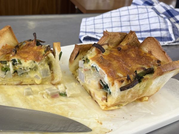 今回パイ生地ではなく食パンを使用することで焼き上げの時間を大幅短縮できました!