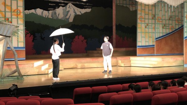 学生はステージに上がって現在絶賛公演中の「KANO」の1シーンを披露!