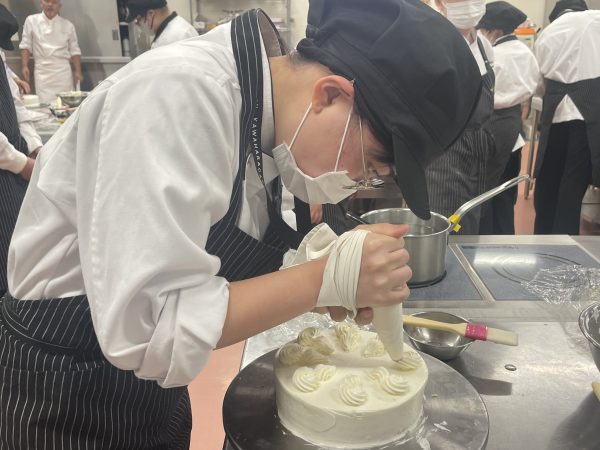 絞りを中心にクリームの厚さ・ケーキの美しさ、均等さ、速さなどを審査する校内での大会です🍰