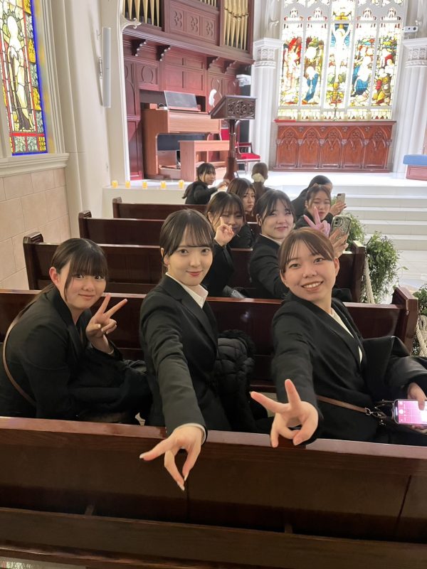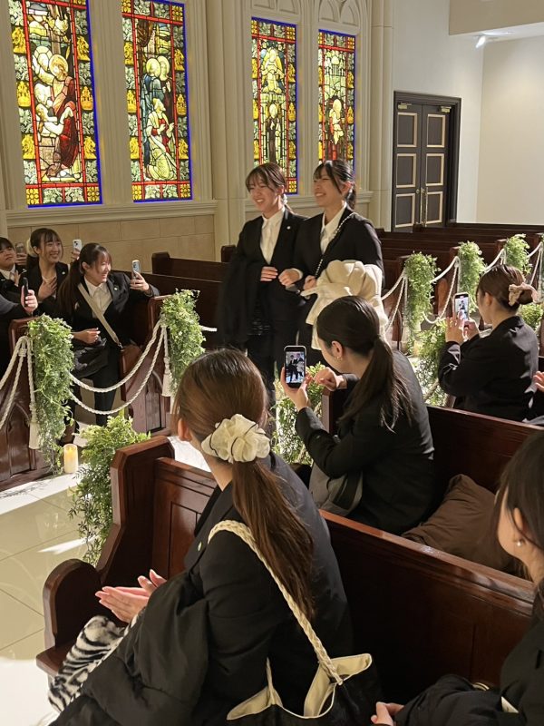 光降り注ぐ壮大な白亜のチャペルに学生たちは、