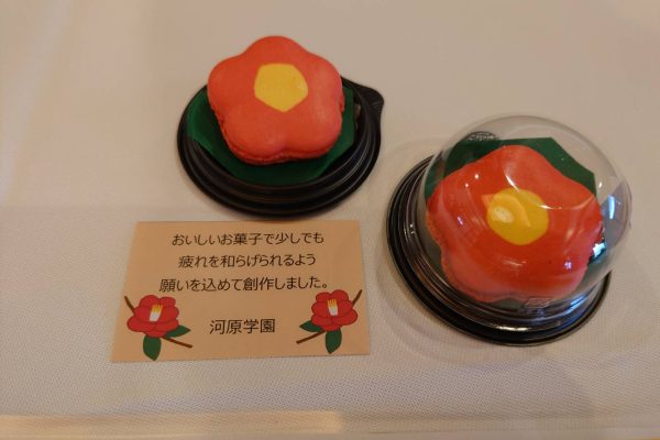【パティシエ・ブランジェ科】松山市「つばきの日」に椿マカロンを提供させていただきました!