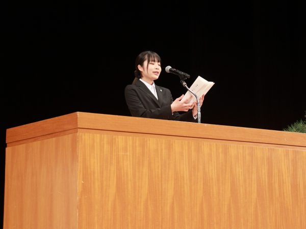 在校生代表の挨拶をしました。