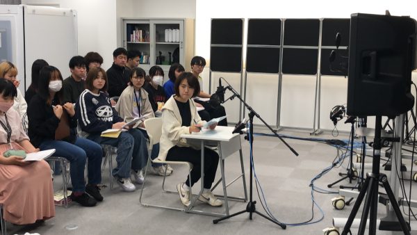 今回はCMのナレーションを声優タレント科1年生が受講。
