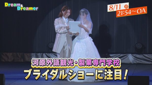 河原学園のテレビ番組「Dream&Dreamer」に、先日の学園祭で行われた【ブライダル・ホテル科 ブライダルショー】が登場します💍