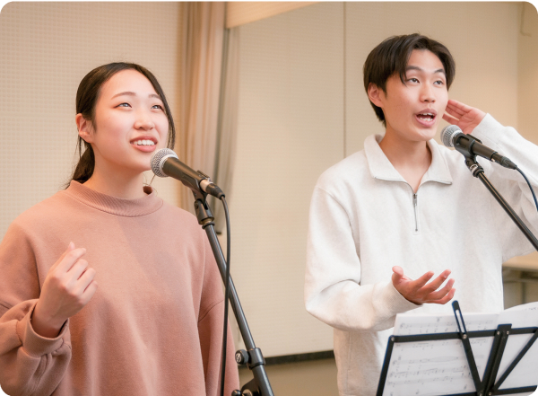 私は、俳優になるために声優タレント科に入学しました。授業では、発声・滑舌の基礎から、ダンス・ヴォーカル・演技・朗読など幅広くレッスンを受けています。演技・朗読の練習を通じて自分自身と向き合い、演技・表現の幅を日々広げられるよう取り組んでいます。出来なかったことが出来るようになると、自分の成長を感じられます!