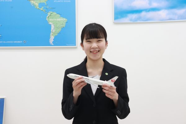 「中学2年の頃初めて飛行機に乗った際、グランドスタッフの方のあたたかいおもてなしが心に残り、航空関係の仕事に就きたいと思ったのがきかけです」