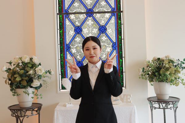 「学校説明会でとても丁寧な対応をして下さり、ブライダルに興味があった為入学を決めました。実習やイベントが多く、実践的に学習出来ることに魅力を感じました。学生達が主体となって式を作り上げるリアルウェディングも、魅力に感じたイベントの1つです」