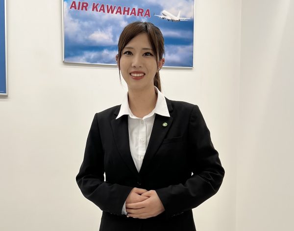 「航空業界や旅行業界を目指している高校生や1年生の皆さん、夢は諦めることなく頑張ることで必ず叶えることが出来ます。自分も本当になれるだろうかと半信半疑で入学したところもありましたが、毎日たくさんのことを学んでいく中で、いつしか自分にも大きな自信がついていました。是非、エアライン・観光科で夢を叶えてください!」