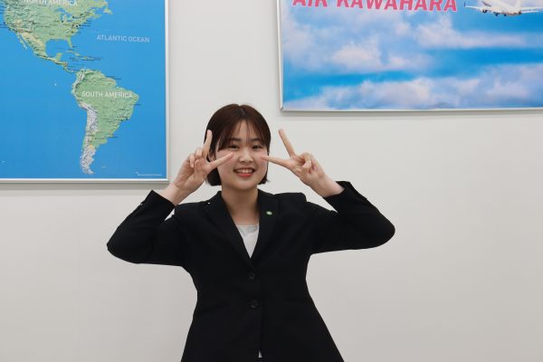 「航空会社で働くために必要な授業だけでなく、中国語の授業を受けることができるという所に魅力を感じました。その他、専門的な資格だけでなく、持っていれば便利な資格にも挑戦出来ることも魅力的でした。また、イベント行事が盛んで、今までに繋がりのなかった学科との交流もあり、勉強にも遊びにも一生懸命取り組める環境が整えられていると感じたからです」