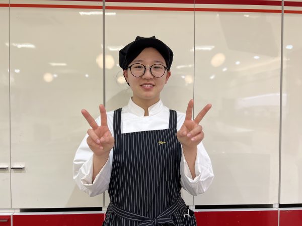 「コンテストのために商品開発に挑戦したり、講習会に参加できたり色々なことに挑戦できます。 座学では、パティシエとして働くために必要な製菓の知識やフランス語も基礎から学べたことです。 また、ナッペ大会、学園祭やスポーツフェスティバルがあったりと学校やクラスのみんなで協力して楽しめる行事もあります」
