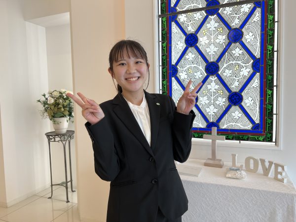 「ブライダルプランナーになりたいと高校生のときから思っており入学を決めました。高校1年生のときからオープンキャンパスに参加し、先輩や先生に気になることはたくさん聞き、この学校なら夢を叶えられると思い入学を決めました。オープンキャンパスでの先輩の姿はカッコよく憧れも強まるばかりでした」