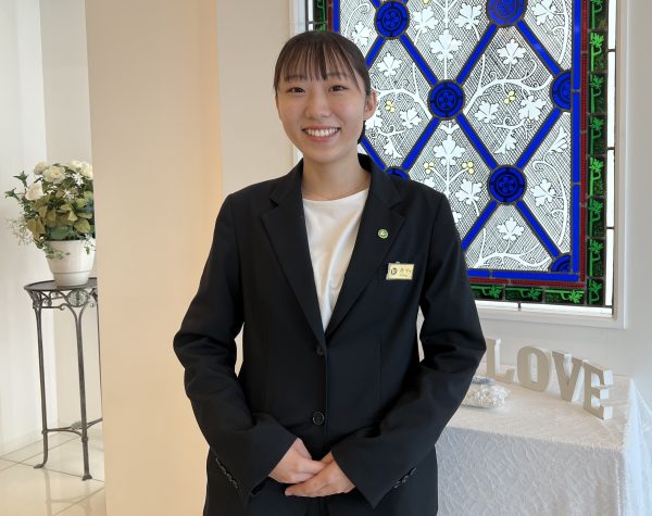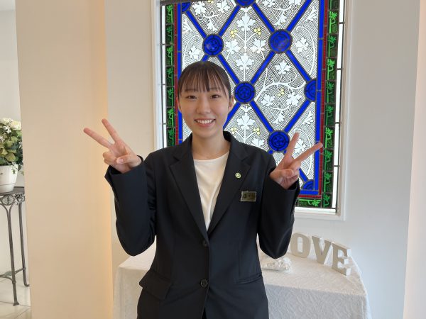 「コロナ禍の中だったので、ブライダル業界に進むことに悩みました。ですが、憧れがあったブライダル業界に進むことに決めました。もともとブライダルとホテルのどちらにも興味があったので、この学校で学んでみたいと思い、入学を決めました」