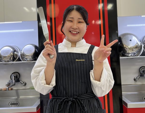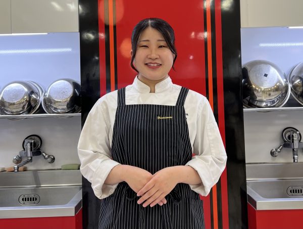 「この学校では、たくさんの有名シェフに指導をしていただくことができます。そういったところから自分の行きたい就職先を早く見つけていくことが大切だと思います。たくさんの仲間と協力しつつ、切磋琢磨して学生生活を楽しんでください。2年間はあっという間なので楽しむ時は楽しんで学ぶ時は真剣に無理をしない程度に頑張ってください」