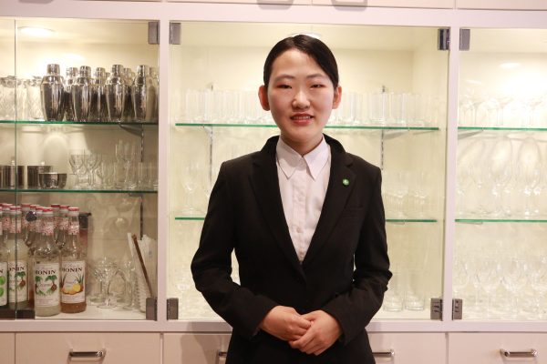 「私がホテルマンになりたいと思ったきっかけは、大阪のホテルで出会ったフロントの方がきっかけです。また、高校時代に仲良くさせていただいていた英語の先生とネイティブの先生がいらっしゃいました。その先生方のおかげで英語の楽しさに気付き、英語に関われる仕事に就きたいと考えました。」