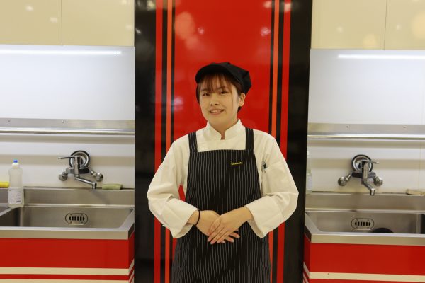 「たくさんの不安を抱えて入学しましたが、できなかったこともできるようになり、自分の強みになることです。世界で活躍されている有名なシェフの講習会に参加し目の前で直接学び私たちの質問にも答えてくださって夢に少しづつ近づいてると思います。就活でも、分からないことだらけで最後まで心配でしたが面接練習などで自分が納得いくまで練習に付き合ってくださいました。」