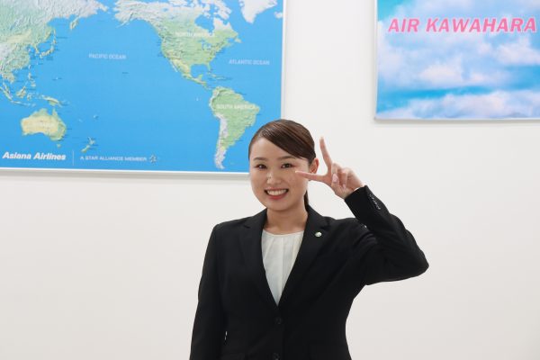 「オープンキャンパスに参加した際に、カウンター業務やアナウンスの実践的な授業があることを伺い、エアラインに関する専門的な知識を学ぶ事が出来る点に魅力を感じました。ここでなら「グランドスタッフになる」という夢を叶えることが出来ると思いました。」