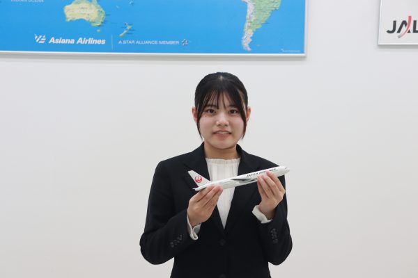 「英語以外にも航空関係に就く仕事に必要な国内地理やグランドスタッフ実務、航空端末など様々な授業の取り組みが行われていると知り入学を決めました。入学して語学力だけでなく専門知識やスキルを向上し自分の将来を叶えるために努力したいと思ったからです。」