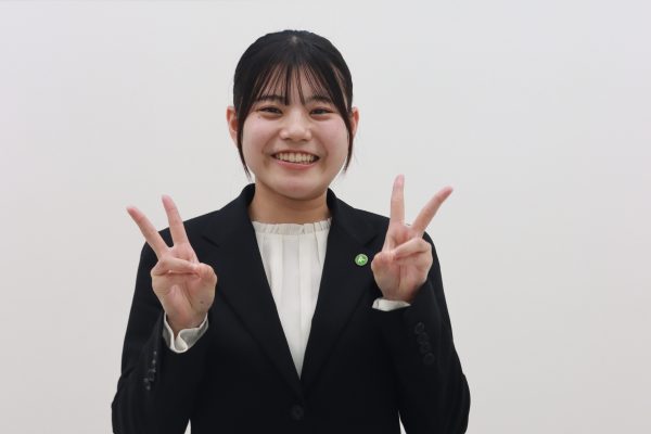 「私は高校時代グランドスタッフさんの制服姿を見て魅力的だと思い真剣に憧れ始めるようになったのがきっかけです。私は人と関わる仕事が好きなのでお客様と直接関わり安全で快適な空の旅をお届けしたいなと思いました。」
