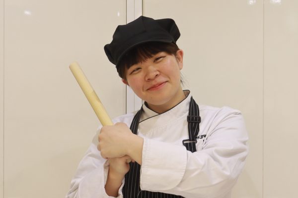 「元々食材を使って何かを作ることが好きで、小さい頃からよく両親と作っていました。高校は調理科に入学し、調理のことを学んでいました。高校2年生の時に、実習担当の先生から「専門学校に進学してみたら?」と進めて頂き、元々製菓にも興味があったことから、河原外語観光・製菓専門学校への進学を決めました。」
