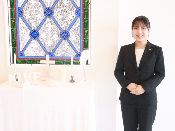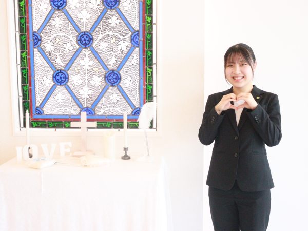 「高校生の頃からブライダル業界に興味があり、県内唯一のブライダルとホテルを学べる学校だったため、オープンキャンパスに参加しました。とても丁寧な対応をして下さった先輩方がとても印象的でした。座学だけではなく実習やイベントが多くあり、実践的に学べるところにも魅力を感じました。」