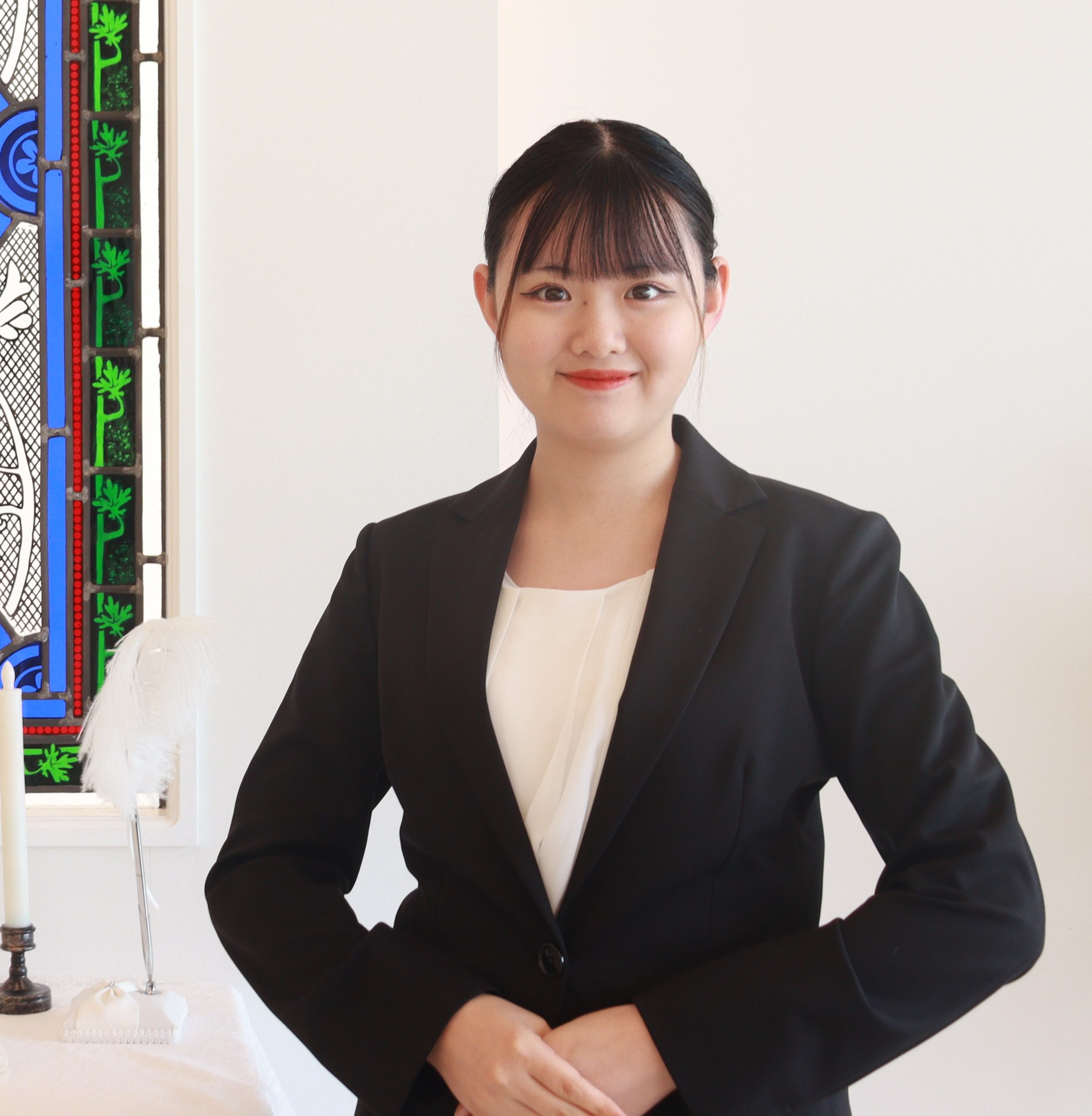 「私が本校に入学を決めたきっかけは、昔から人を笑顔にする事が得意で、将来も人を笑顔にできる職業に就きたいと思っていた時に、本校のブライダルホテル科を見つけ、入学したいと思いました。実際にオープンキャンパスに行った際に、ブライダルホテル科の先輩方がとてもキラキラしていてかっこよく、私が入学に対して不安なことを質問しても優しく返答して下さる姿や先生方と先輩方の雰囲気がとても素敵で、ここで学びをしたいとその時も感じました。」