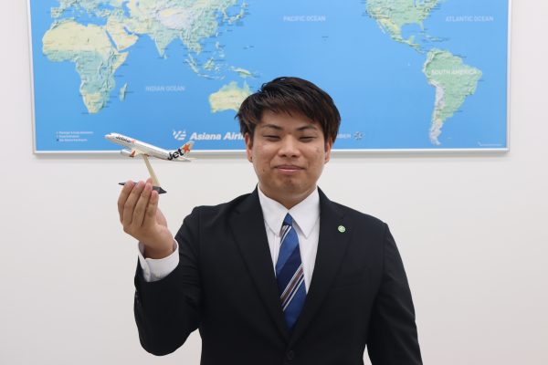 「幼い頃から飛行機が好きで自分も傍で働きたいと思ったことと人を助ける仕事に就きたいと思いました。人を助ける仕事は沢山ありますが、自分の好きな飛行機関係の仕事にも人を助ける仕事があることを知りグランドハンドリングになりたいと強く思ったためです」