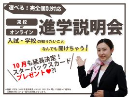 新着情報【10月延長決定】来校型orオンライン進学説明会 参加者特典♥スタバカード