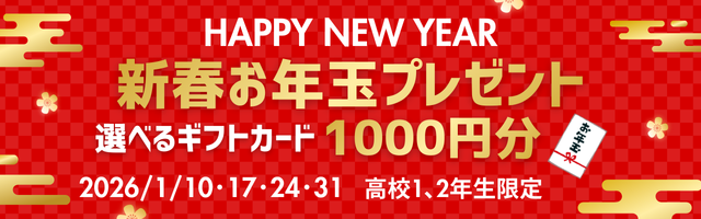 1月のオープンキャンパスに参加された方(高校1、2年生限定)に選べるギフトカード1000円分プレゼント🎁